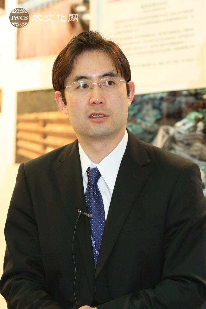 嘉宾:这是第一次来参展,我发觉中国对我们所生产的这种天然木材制品非常关心,中国人想要的是真正的木材,而且中国人对环境的关心也提高了,比如说对这个制品生产时所消耗的能量,及使用制品时对环境保护作出了多大的贡献等,并且对中国人对我们的关心越来越高表示感谢。我们这有中国人所期待的所有制品,我们想通过这次展会向中国各界人士进行提案,并且想找合作伙伴进行合作,共同开发中国市场。日本从历史上来说向中国学到了很多东西,我们在使用汉字,从现在起我也希望中国教会我们一些东西,同时希望跟中国一起开发对环境有贡献的木材产品。