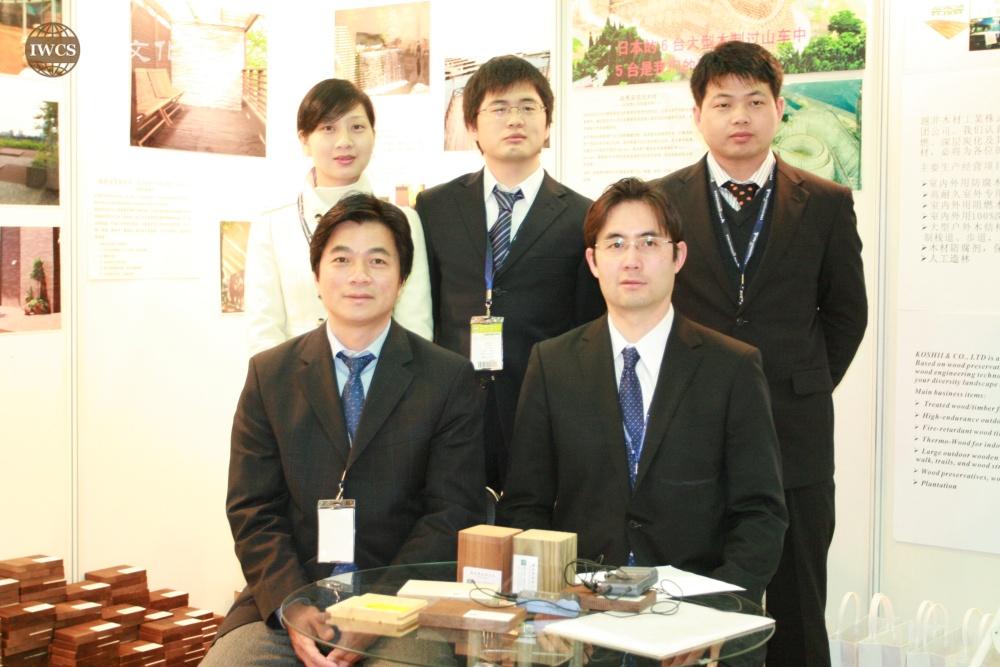 嘉宾:我们来自日本,我是越井木材工业株式会社社长越井润,另外介绍下我的成员,这位邱先生是中国市场开拓司的司长、责任者,已经来日本二十多年了,此外,敝司参加这次展会的还有小魏、小武、小方。