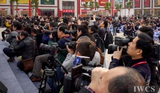 各种媒体挤在舞台前试图拍到更好的镜头