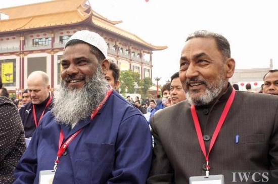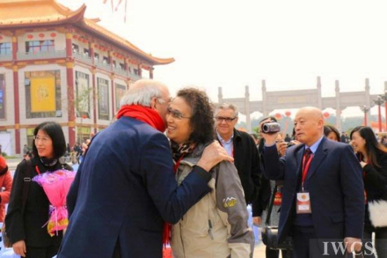 2014世界木材日委员会委员,莱顿大学名誉教授Pieter Baas先生(前左)和中国林科院的姜笑梅研究员互相问候