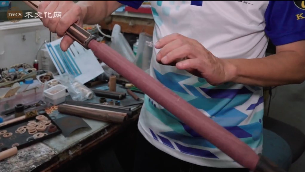根据制作方式的不同,台球杆有手工杆和机械杆之分。制作手工杆,首先要选择品质好的前肢木材,以达到台球杆的力度和硬度,常见的有白蜡木、枫木、橡木等。木材大多采取自然风干来保证其稳定性,使球杆不易弯曲和变形。制杆师按木材纹理进行切割后,手工打磨出椎度,再根据木材的密度调整出球杆重心所在的位置,最后还需组装、打磨、抛光、装饰、镶嵌等多道工序才能完成一支球杆的制作。