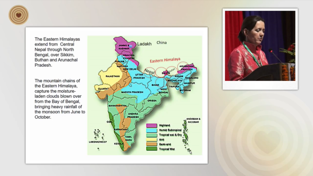 The Eastern Himalayas extend from Central Nepal through North Bengal, over Sikkim, Buthan and Arunachal Pradesh. The mountain enclosure of the Himalayas in the Darjeeling-, Sikkim-, Bhutan- and Arunachal-corner, captures the moisture-laden clouds blown over from the Bay of Bengal, thereby providing the Eastern Himalayas with heavy rainfall from June to October, the so-called monsoon. Therefore, the forest flora is rich in trees species, providing the country with a great timber selection. The study of the wood species used in traditional buildings teaches us how humans made use of the wealth of the forest flora.