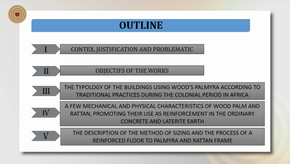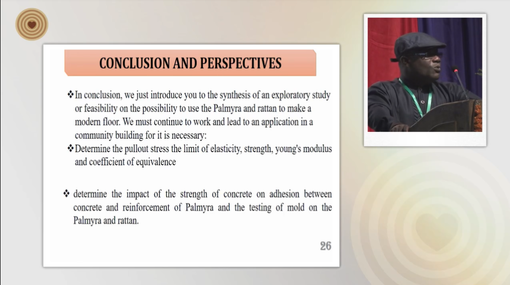 报告题目:Contribution to the Return of the Traditional Practice of the Use of Wood of the Palm and Rattan in the Structures of the Buildings in the Context of the Modernization of the Habitat in West Africa: Case of Bioclimatic Floors