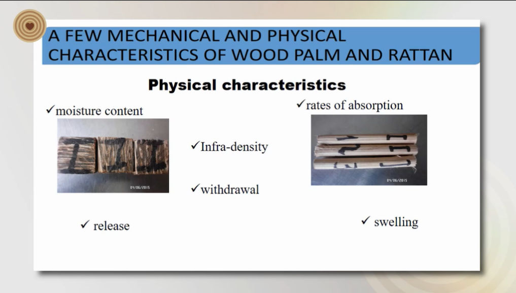 2. A few mechanical and physical characteristics of wood Palm and rattan, promoting their use as reinforcement in the ordinary concrete and late rite Earth;