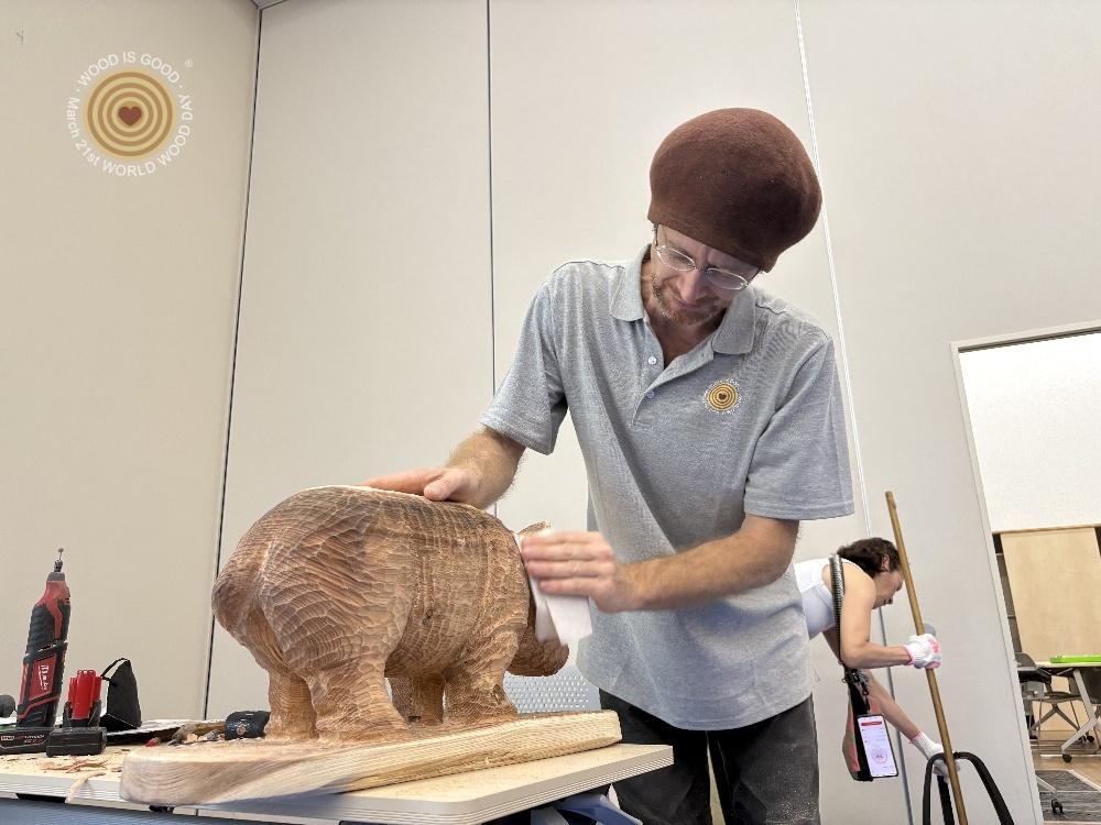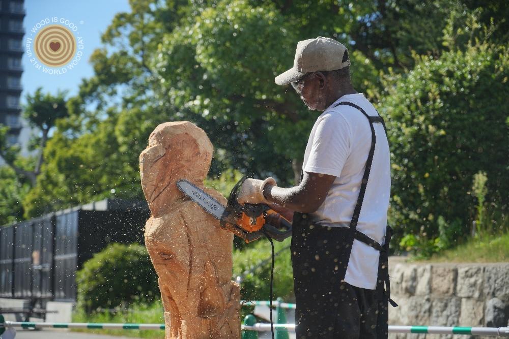 2025世界木材日国际木雕现场创作在日本大阪举行
