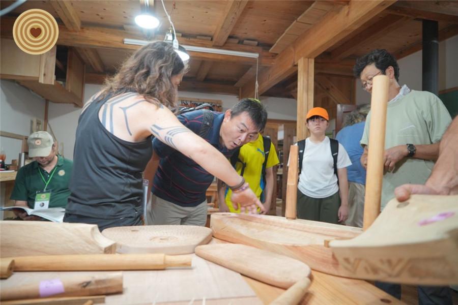 8月30日的开放日吸引了当地民众前来参观。现场设置了作品展示与介绍环节,艺术家们为观众讲解创作理念与技艺细节,让参观者深入了解作品背后的文化内涵。此外,主办方还介绍了世界木材日的发展历程以及国际木文化学会(IWCS)在全球木文化保护与传播方面所做的重要工作。