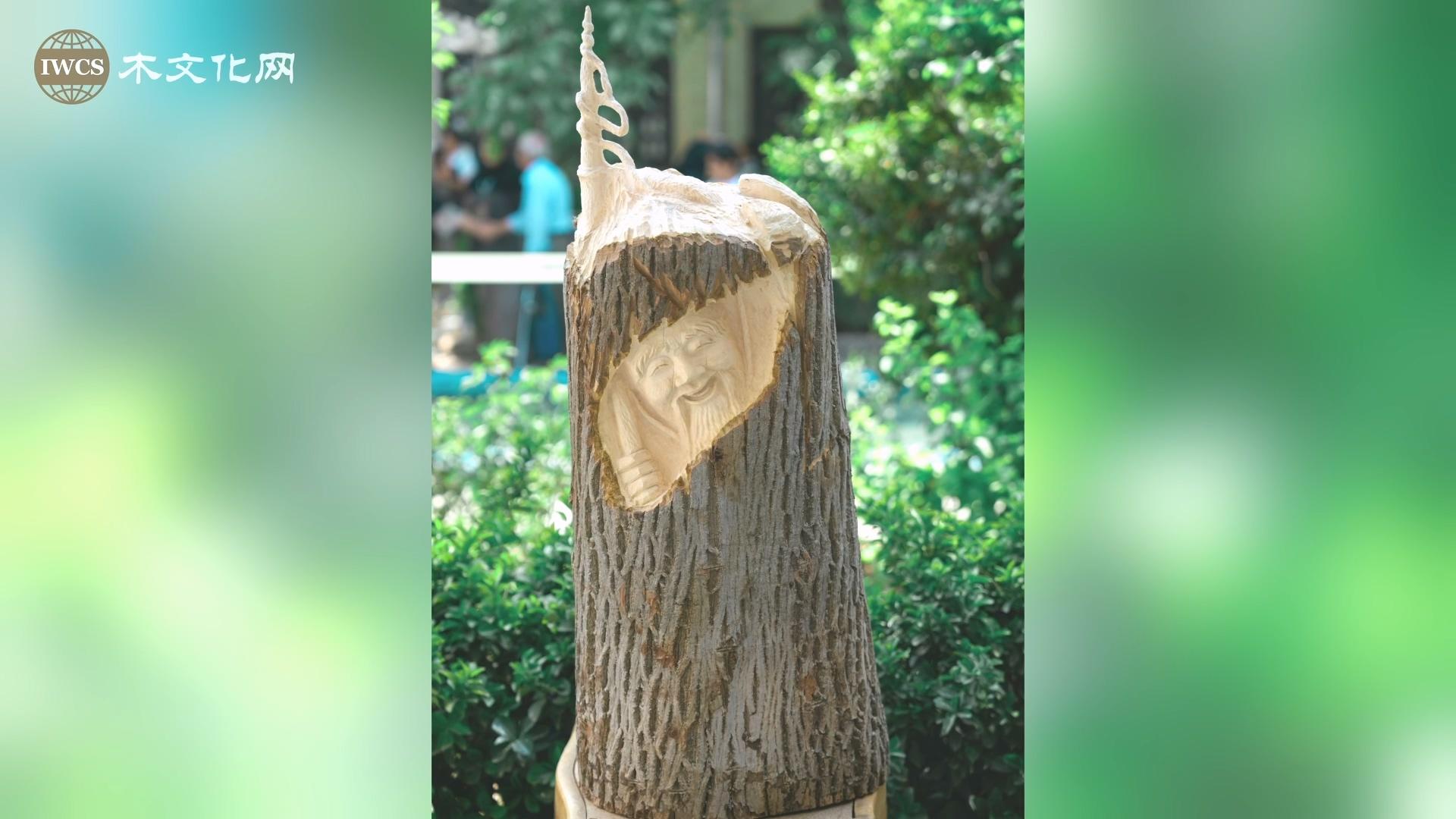 作品简介: 作者保留了木材70%的原生树皮自然形态,以此为基础雕刻出一位笑容满面的中国老渔翁形象。老者手持鱼竿,背着很多鱼满载而归。作品寓意作者此次出国交流活动收获丰硕。整件作品运用了国家级非遗“黄杨木雕”的传统技艺雕刻而成,通过木雕艺术传承与传播中华文化的深厚底蕴。