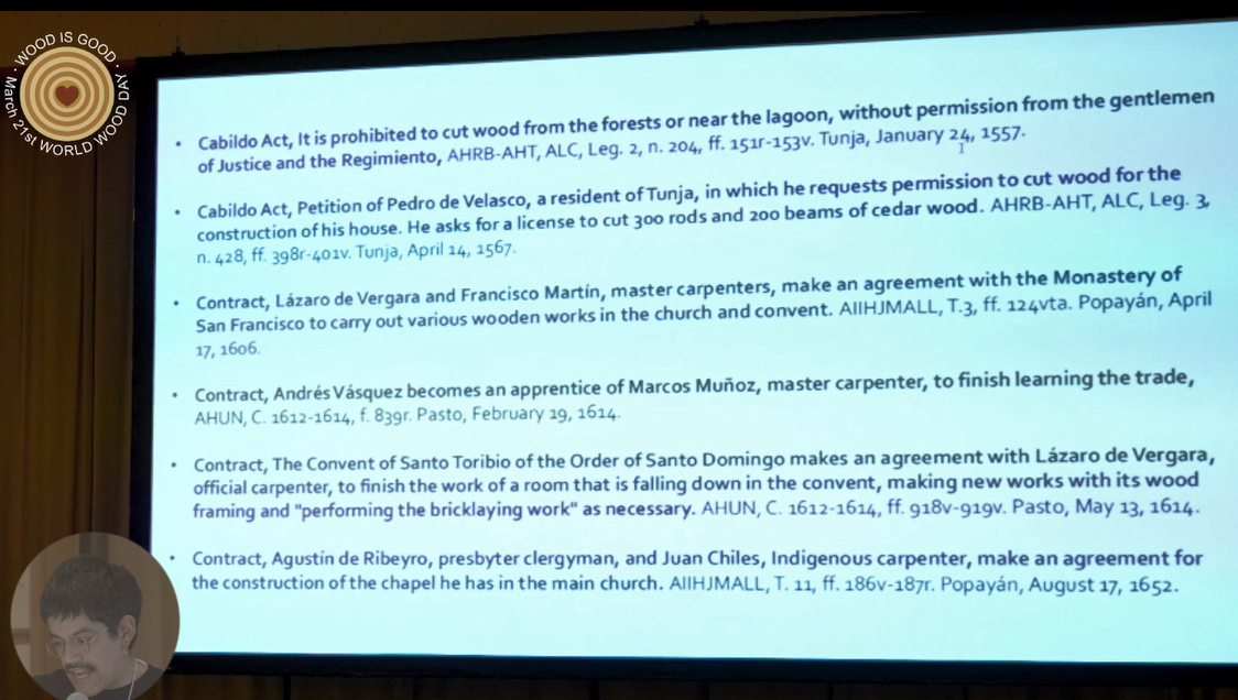 This paper explores the essential role of wood in architecture, not solely as a building material, but also as a crucial factor in the political administration and consolidation of territorial and human control by the Spanish Empire in its American colonies, specifically in what is now Colombia. Within this framework, the familiarity of Spanish carpenters with local wood varieties and the exchange of techniques with Indigenous, Africans, and mixed-race artisans emerge as key aspects of this study. The paper examines carpentry not as a mere passive transfer of technical knowledge, with the Spanish imposing their practices, but rather as dynamic phenomenon where local conditions drive adaptations and technical innovations. To achieve this, the paper integrates the built environment with historical documentation to reveal how human, political, and environmental factors impacted the various uses of wood in framing carpentry throughout colonial Colombia during the sixteenth and seventeenth centuries.
