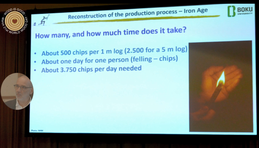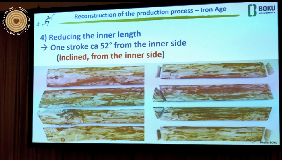 Almost all the chips were made from fir. The manufacturing process was reconstructed from the characteristics of the chips. This differs considerably between the Iron Age and the Bronze Age. The older chips probably had some kind of pre-fabrication - radial pre-splits, which were no longer used in the Iron Age.