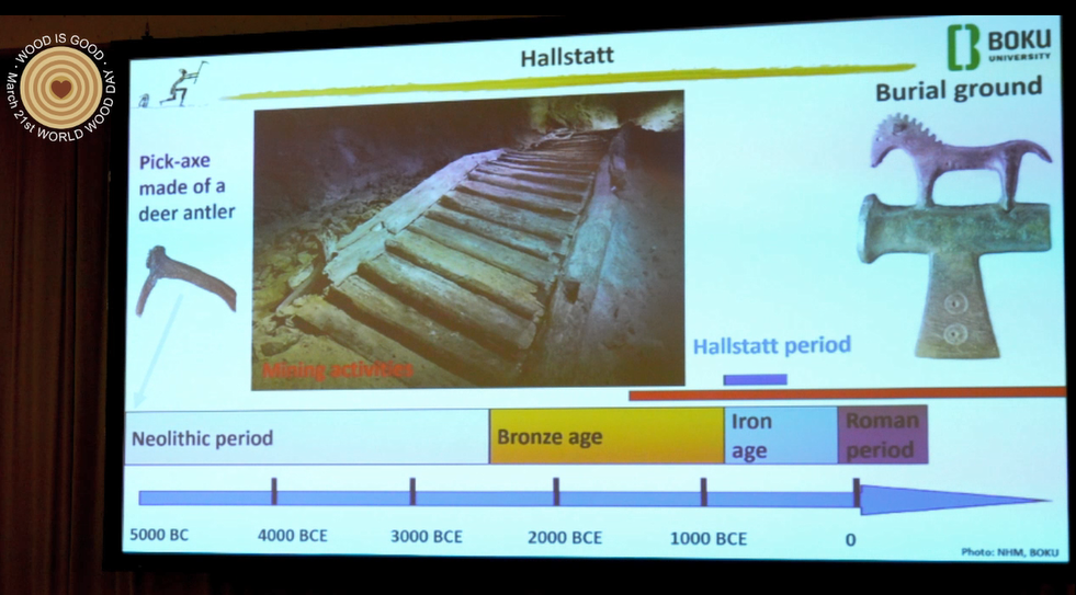 Salt preservation in the mines of Hallstatt, Austria, has resulted in the preservation of a large number of organic objects left behind by prehistoric miners, such as tools and implements made from animal skins, ropes made from grass and lime bast fibres, textiles and numerous wooden artefacts, such as the lighting chips.