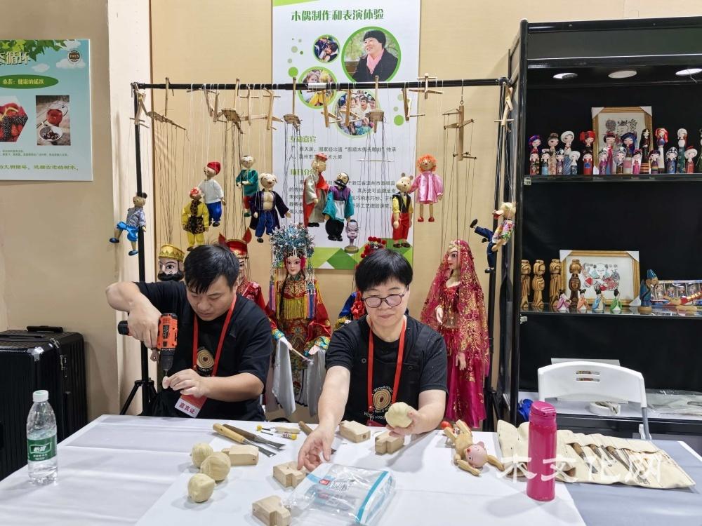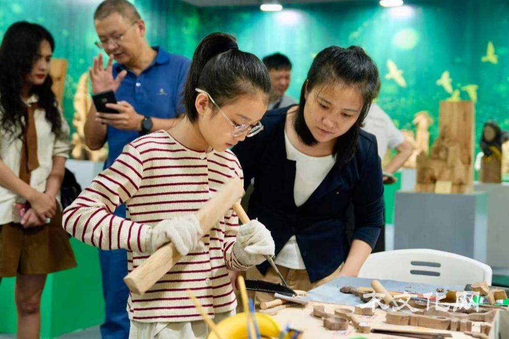 第二部分:与木为伴,方得清欢。互动体验成为这部分的亮点。国家级非遗“泰顺木偶头雕刻”传承人、温州市工艺美术大师季天渊亲临现场展示木偶制作并带来精彩的木偶表演。状元红文化家具有限公司总经理王志达现场指导“木墩和林儿”主题的雕版印刷,感受传统技艺的魅力与乐趣。希腊木艺术家Georgios Athanasakis与塞浦路斯木艺术家Antri Pafiti现场展示精湛木艺,为文化交流增添国际色彩。