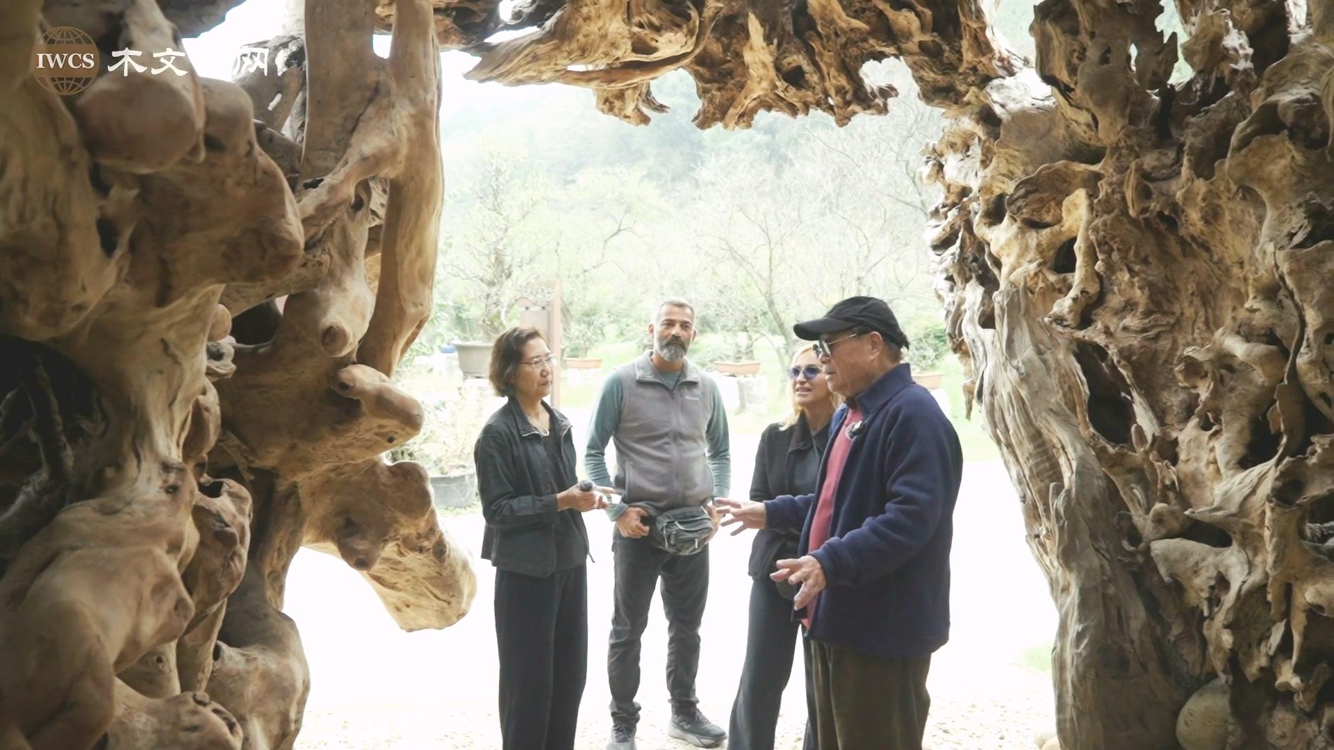 浙江长兴东方梅园掌舵人吴晓红先生,亲自带领国际木文化学会一行,探访古森林博物馆、古森林艺术长廊等标志性景观。众人近距离感受中国古森林文化的深厚底蕴,以及木艺创作的独特魅力。围绕古树根的天然纹理、肌理与线条,吴晓红详细阐释了 “一馆一廊一壁一路” 的独创性构想。