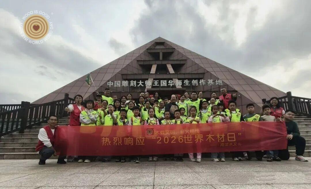 当春日的阳光洒满木雕基地,锯子与木料的摩擦声、孩子的欢笑声与木屑的清香交织在一起,构成了一幅生动的画面。正值“世界木材日”,室外境教的亲子家庭们走进位于南康的中国木雕大师王国华师生创作基地,在木头的纹理间,开启了一场关于创造、传承与陪伴的奇妙旅程。这不仅是一次手工体验,更是对2026世界木材日“木载文明,薪火相传” 这一年度主题的生动实践。