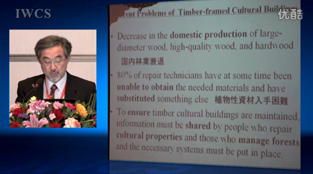 我将介绍木制文化建筑的木材原料和在日本为保存文化材料所作的一些努力。