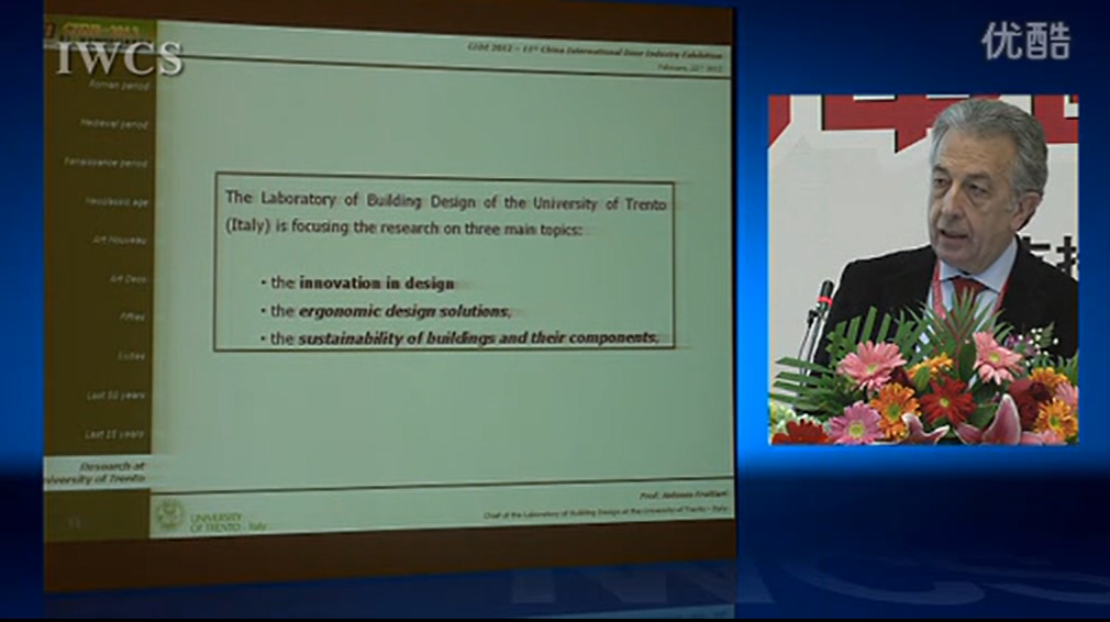Antonio Frattari教授,1975年毕业于意大利罗马第一大学(University of Roma “la Sapienza”)建筑系并留校任教。1986年他来到意大利特伦托大学,担任建筑与土木工程学院教授至今。Antonio Frattari教授还担任特伦托大学建筑设计实验室主任、CUnEdI(智能建筑中心)主任。Antonio Frattari教授是(ICOMOS)国际古迹遗址理事会和国际房屋科学协会(IAHS)的成员。在过去的15年中,他在多学科领域中开展研究,并主要致力于可持续和低能耗建筑的研究,目前他的主要研究方向是木结构建筑的技术创新、低耗能且通用设计的楼宇自动化和木建筑的翻新。