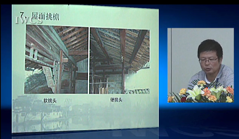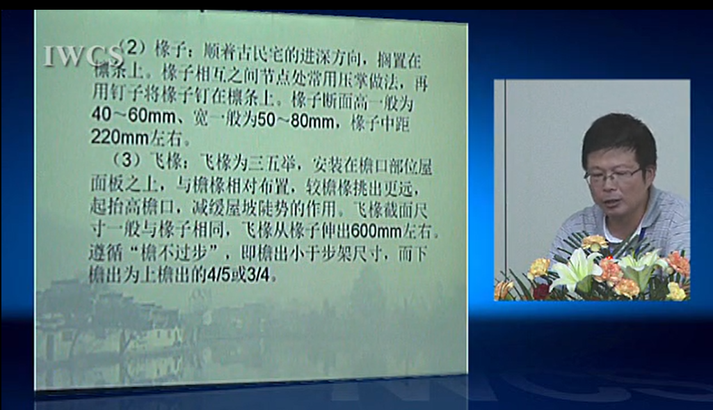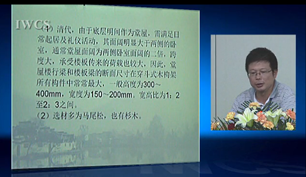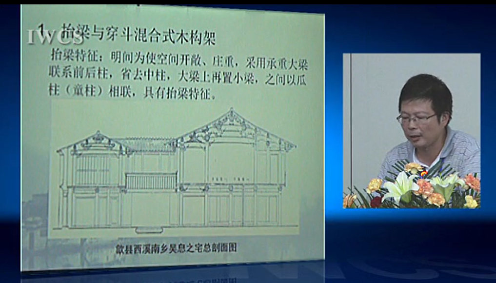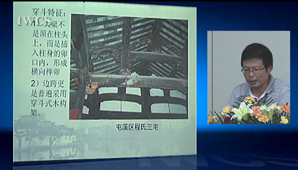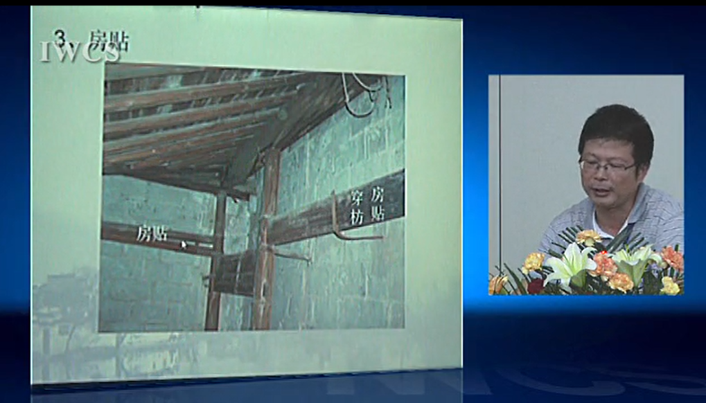 穿斗式木构架主要构件有柱、穿枋、房贴、檐枋、楼行梁、楼板梁、挑头栅、楼板枋、地栿、檩条等。