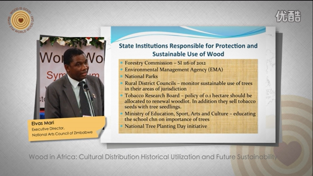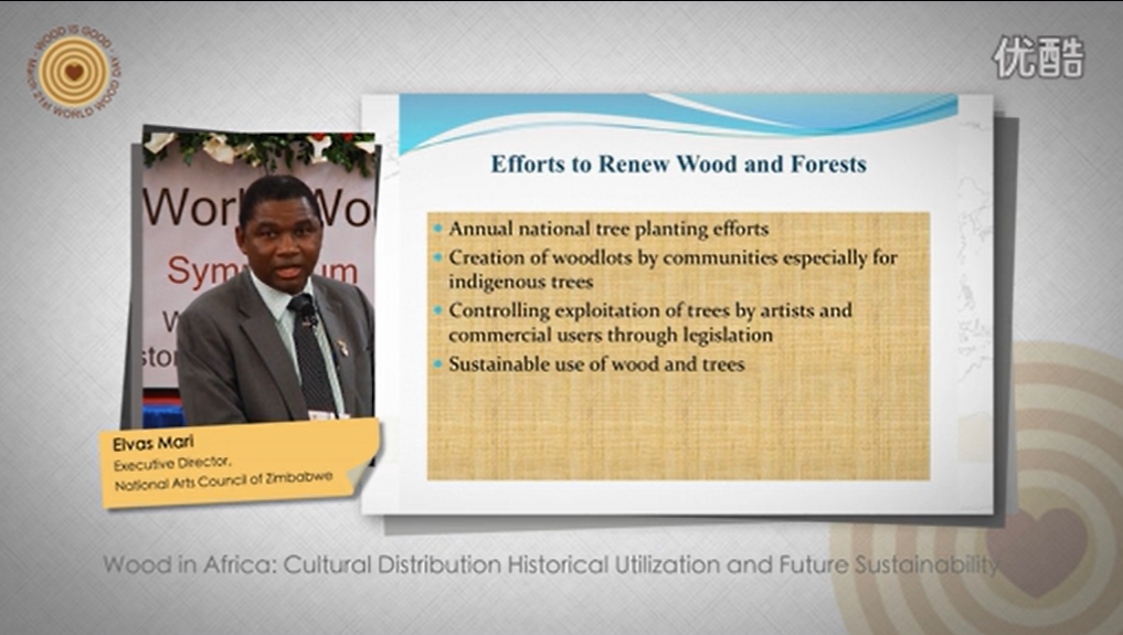 Wood has been one of nature's greatest gifts to mankind. Wood and wood-based products are the most important of all man's resources for three main reasons; wood is universal, it is a raw material that can satisfy almost every requirement or existence. Wood is abundant, more than eight billion acres, one quarter of the total earth's surface, are forested. Wood resource is inexhaustible and renewable, the forest is not a mine that will be depleted as it is very easy to renew. The Zimbabwean Experience has provided lessons in sustainable use of wood especially its traditional practice namely; The tradition of totemism, Tradition of sacred places, The practice of certain trees not used for certain activities and the Chieftainship system that has enabled Chiefs and headman to oversee the use of forests and wood. The greatest threat to Sustainable Use of Wood/Tree is commercialization of the wood and wood products and destruction of traditional practices. The use of wood in art has been as long as the people of Zimbabwe. Arts will never and has never been a threat to sustainable use of wood in Zimbabwe although many organizations have argued and in some cases banned wood sculpting.