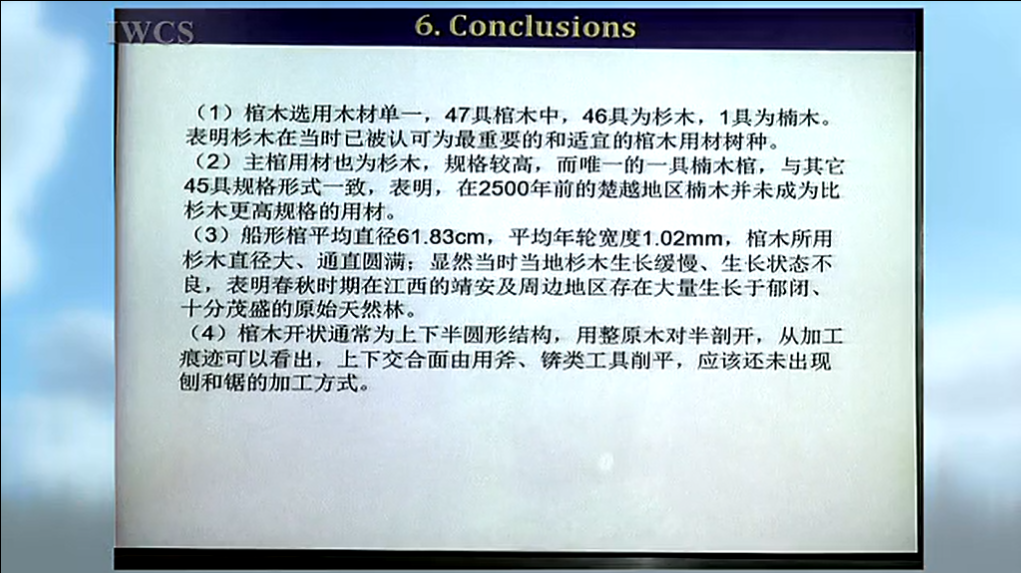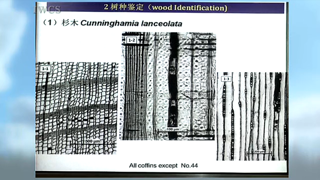 对位于江西省靖安县李洲坳的东周(春秋中晚期,距今约2500年)的墓葬棺木用材进行了鉴定分析。该墓中同时埋存有有47具棺木,其中主棺一具,是我国发现时代最早、埋葬棺木最多的一例奇特墓葬,并因此成为2007年全国十大考古发现之一。对该墓葬中棺木用材的分析表明: