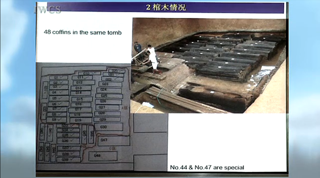 (2)主棺用材也为杉木,规格较高,而唯一的一具楠木棺,与其它45具规格形式一致,表明,在2500年前的楚越地区楠木并未成为比杉木更高规格的用材。