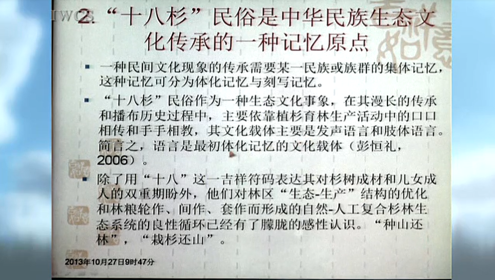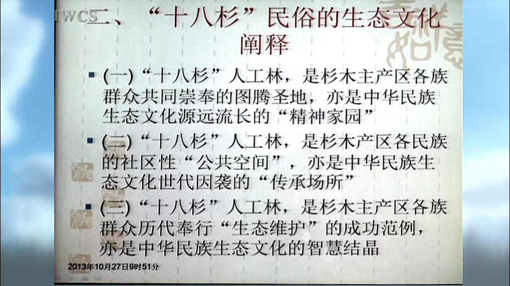 Key words: ecosystem culture; Eighteen Years Old Chinese Fir; folklore