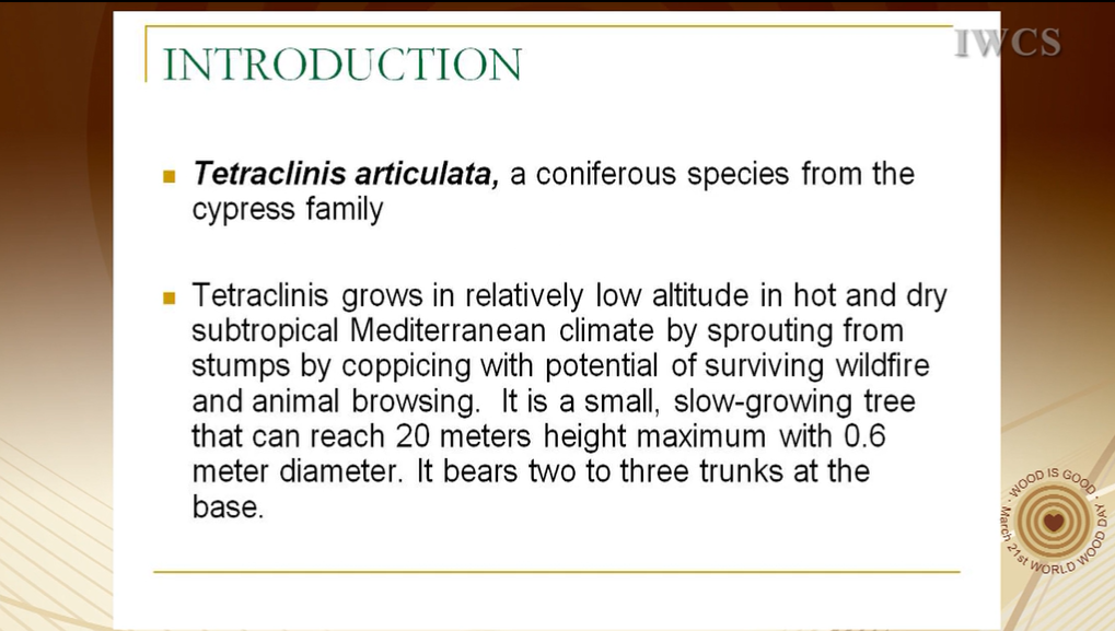 The Thuya is a tree of the coniferous family, close to cedar, which grows only in Morocco. Special and luxurious cedar, hardwood is a recognizable by its dark red speckled with clusters of small dark brown spot and sometimes reasons veins golden color. Quality for this wood is its hardness, rarity, it has hundreds of textures, luxury appearance, the beautiful polished it manifests after polishing.
