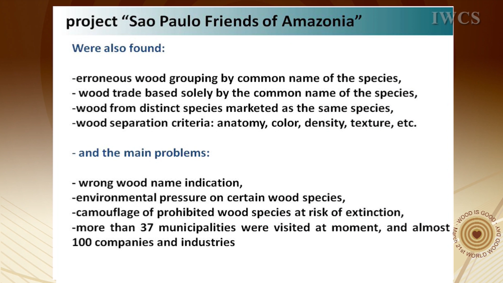 One of the most important initiatives of the last decades is the "São Paulo Program Friends of Amazonia" implemented in 2007 in order to oversee and regulate the trade of tropical timber. Through the program surveys are applied in the phases of transport and storage of tropical wood species and collected samples for botanical identification of species, and faced with the source documents. The results of the implementation of the program indicate the effectiveness of the identification of tree species by wood anatomy, as a tool for the monitoring and regulation of illegal trade in forest products, especially timber, in the state of São Paulo.
