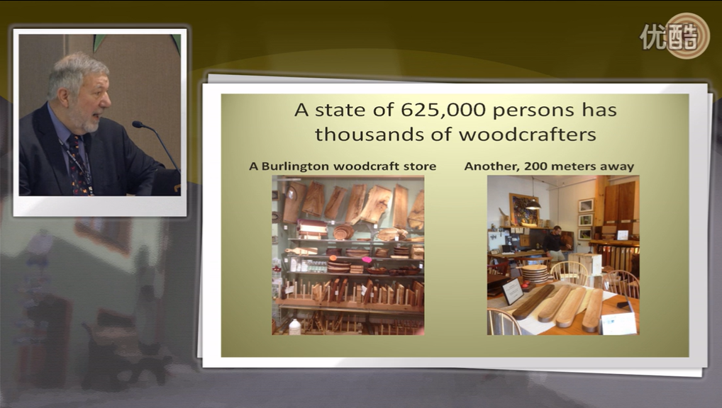 演讲摘要:Vermont, a small state in New England, a region that constitutes the six-state northeastern corner of the United States of America, is noted for its tree-covered hills and mountains, from which derives its name, an Anglicized version of the French Verd Mont--Green Mountain. Today approximately 82 percent of the state is covered by conifers and deciduous trees, making it one of the most densely forested areas in the USA. The most famous of its trees is the sugar maple (Acer saccharum), noted for its sap, from which is produced sweet maple syrup each Spring, and its hard wood, which is prized by wood crafters near and far. Although one immediately thinks of the sugar maple as the archetypal Vermont tree (and this is especially so in Autumn when its blazing red leaves enliven hillsides and valleys), it is only one of many native trees that provide an apparently ever-growing number of Vermont crafters and artists with the hard and soft woods that serve as the media from which they create wooden products that are both utilitarian and works of fine art.
