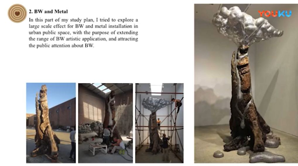 Therefore, as a designer and a scholar of Chinese art history, I try to integrate the concepts of Chinese wood tradition and contemporary aesthetic visions or practical functions by the creative use of bog-wood in modern sculpture, installation and houseware design. And with the financial support of WWDF, I carried out a series of design practice and study, which included various bog-wood based artworks and the participation of relative art exhibition. I also collaborated with other artists to explore the further using possibilities of bog-wood, and got some preliminary experiences and ideas. So this essay is not only a summary report for what I fulfilled in the artistic studies of bog-wood in the past year, but also a reference of my fresh ideas which I hope to share with all participants of the symposium and other readers.