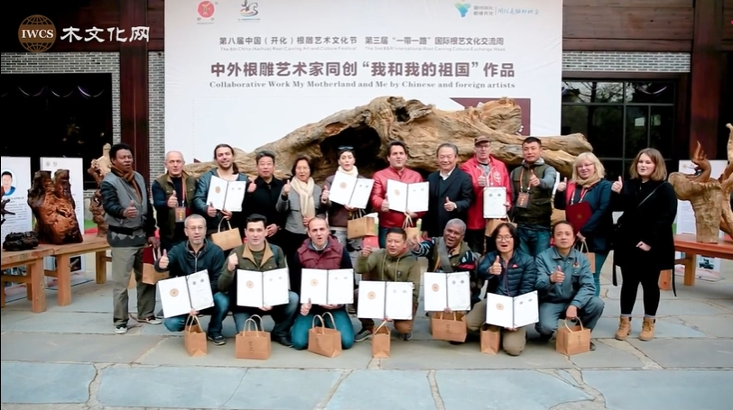 2019年是新中国成立70周年,远道而来的国际根雕艺术家除了每人独立创作一件根雕作品,还与代表中国的开化籍浙江工艺美术大师方义在同一件根材上,以“我和我的祖国”为题,分别雕刻一个代表自己祖国的符号,如图腾、代表性建筑、山川河流等,完成了一件寓意深刻的大型根雕艺术精品。