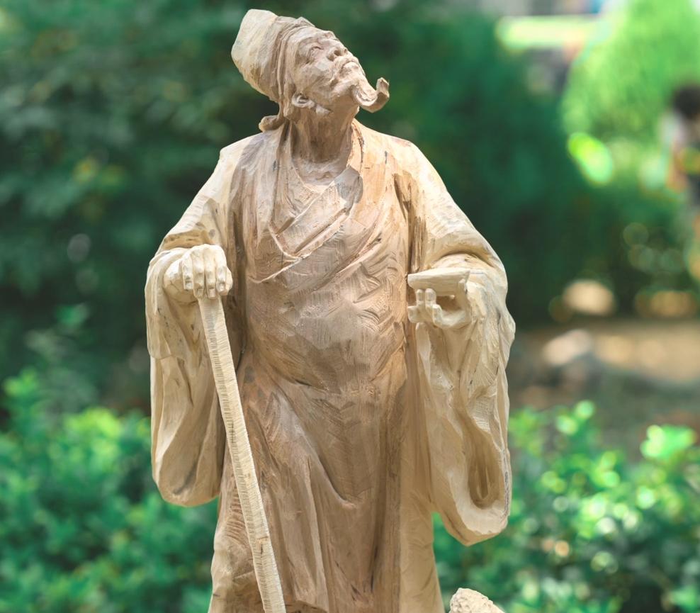 作品取材自作者珍藏多年的福建龙眼木,以精湛的雕刻技艺塑造了两位相拥而立的华夏老者形象…